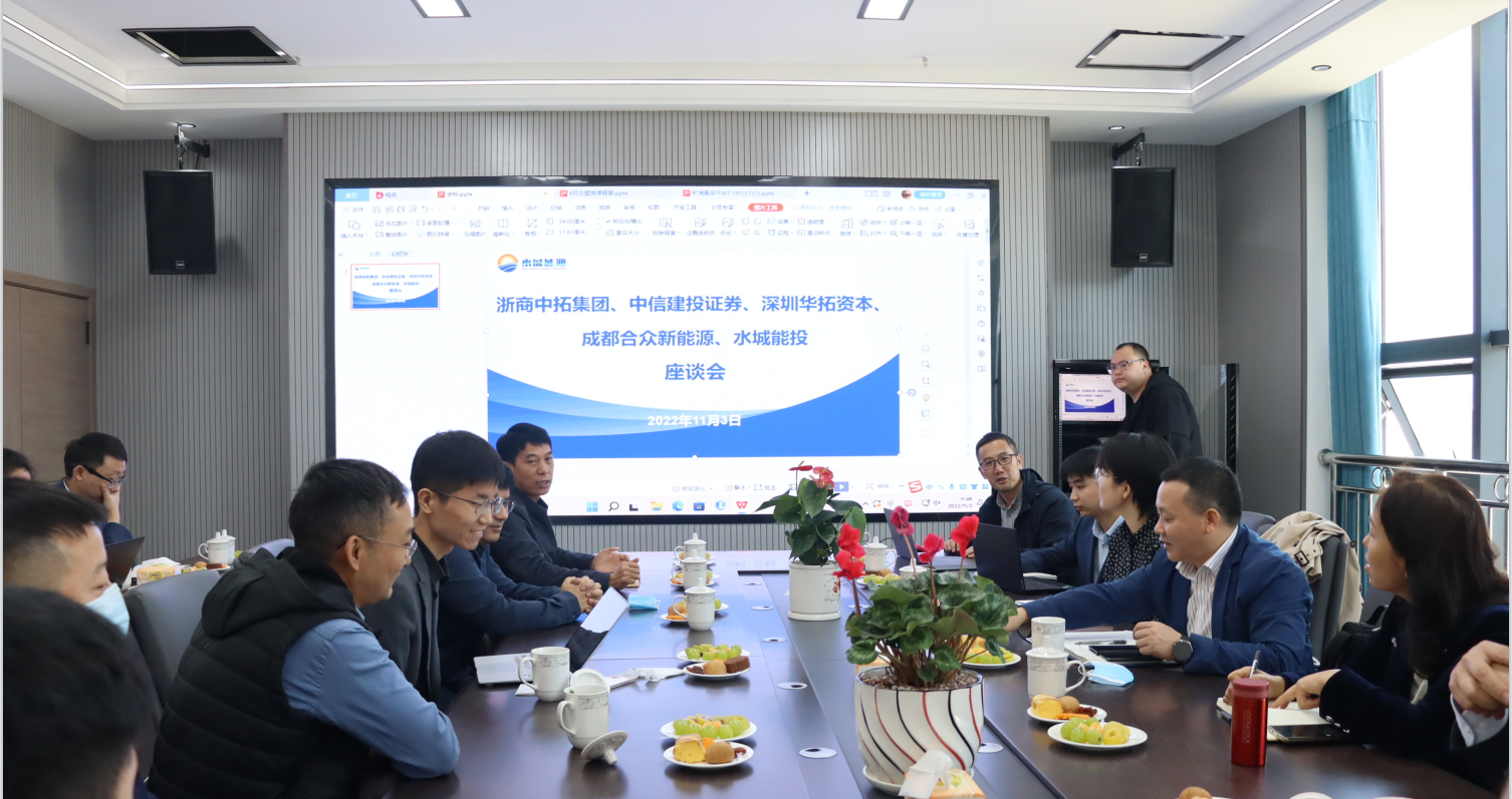 2022年11月3日,浙商中拓集團(tuán)股份有限公司、中信建設(shè)證券股份有限公司、深圳華拓資本投資管理有限公司、成都合眾有限公司、六盤水市水城區(qū)能投實(shí)業(yè)(集團(tuán))有限公司在水城能源大廈17樓會(huì)議室召開座談會(huì)。